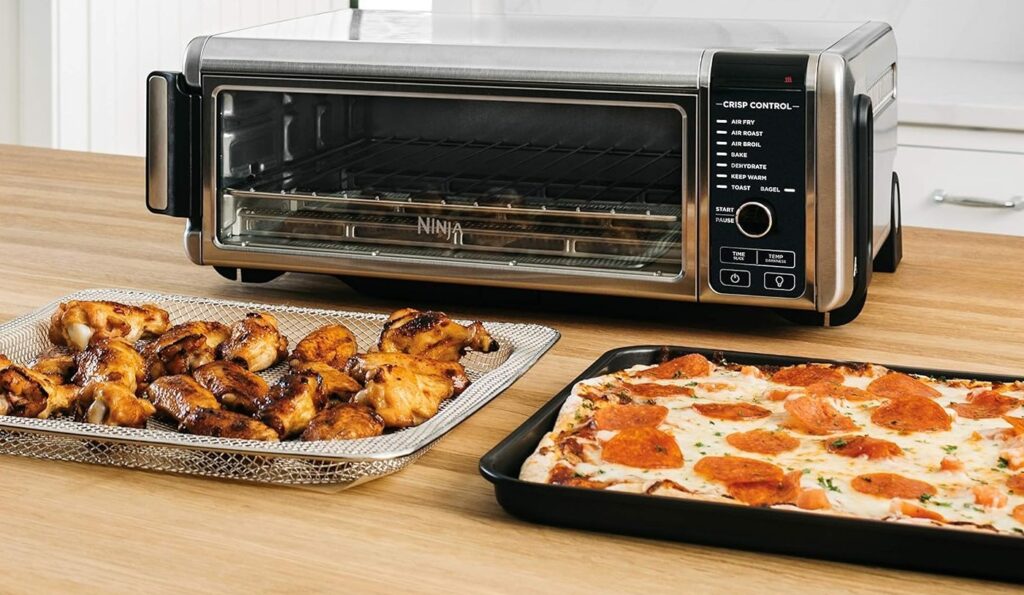 An oven works well for sheet pan meals, baked proteins, and batch cooking vegetables. A reliable countertop oven allows even cooking without heating the entire kitchen.