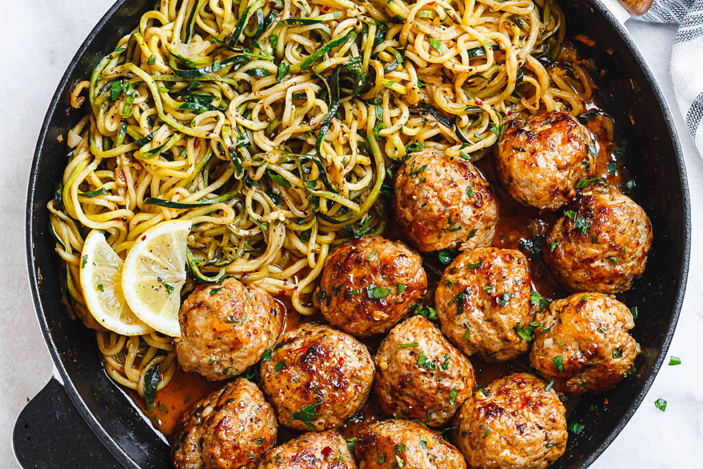 Serve with zucchini noodles and a simple tomato sauce made from whole ingredients.