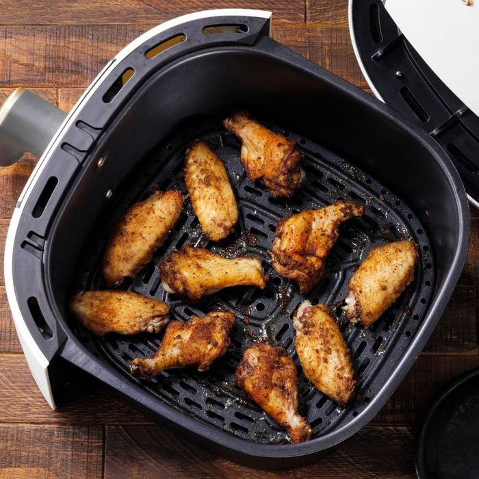 Shake the basket halfway through cooking for wings or fries.